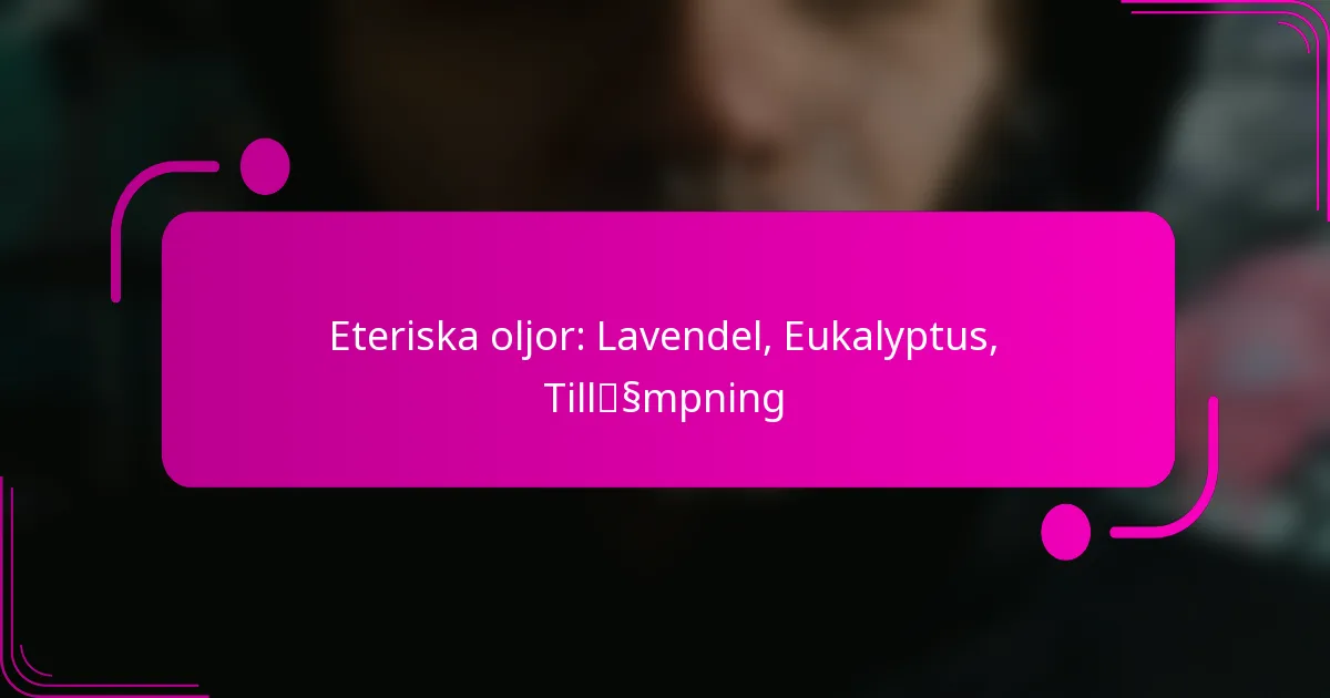 Essentiella oljor, såsom lavendel och eukalyptus, hyllas för sina mångsidiga terapeutiska fördelar. Lavendelolja är särskilt känd för att främja avslappning och förbättra sömnkvaliteten, medan eukalyptusolja stödjer andningshälsa och mental klarhet. Att förstå de olika tillämpningsmetoderna för dessa oljor kan öka deras effektivitet i din wellnessrutin.
